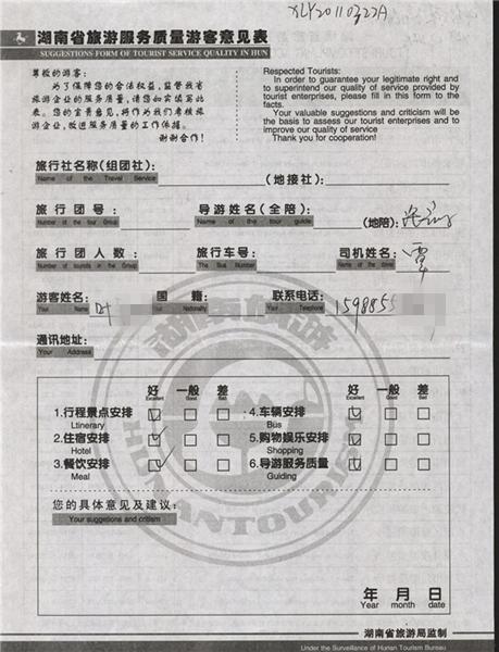 2011年4月5日葉先生一行2人旅游質(zhì)量反饋